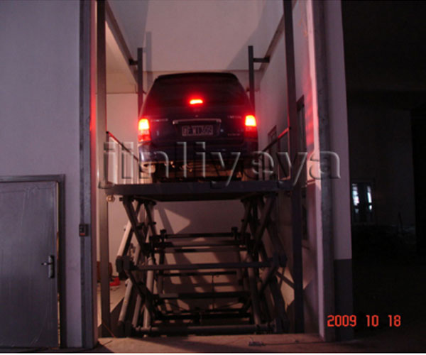 升降機(jī)安裝在地坑內(nèi),下降到低高度時(shí),工作臺(tái)面與地面持平。